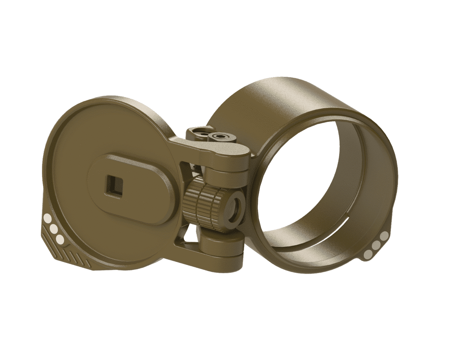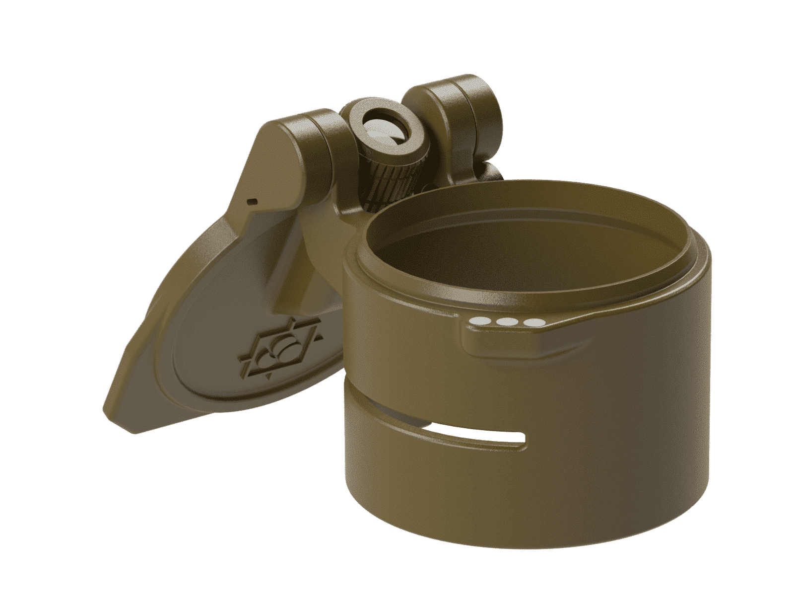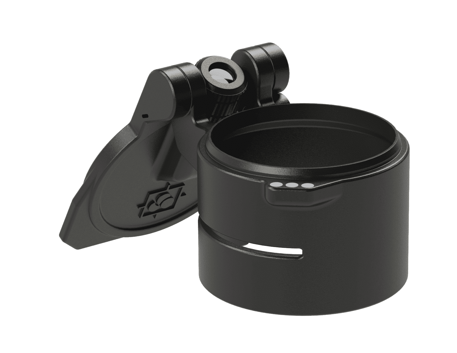 Cuando está cerrada, la tapa funciona como una cubierta protectora resistente para el ocular de una mira telescópica, protegiendo la óptica de la suciedad, los residuos y los impactos durante el transporte y el uso en el campo. Sin embargo, al abrirla, revela su característica distintiva: una lente óptica integrada colocada para quedar orientada hacia el tirador.