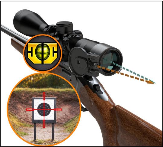 Esta lente adicional proyecta un nivel de burbuja en el mismo plano focal que la imagen del objetivo que ves a través de la mira. Como resultado, la inclinación del rifle se puede comprobar al instante con una ligera mirada hacia la izquierda, sin necesidad de reenfocar la vista, mover la cabeza ni romper la posición de tiro. A diferencia de los niveles de burbuja tradicionales montados externamente, que requieren un movimiento notable de la cabeza y un cambio en el enfoque visual, esta solución mantiene toda la información visual crítica donde debe estar: directamente en tu línea de visión.